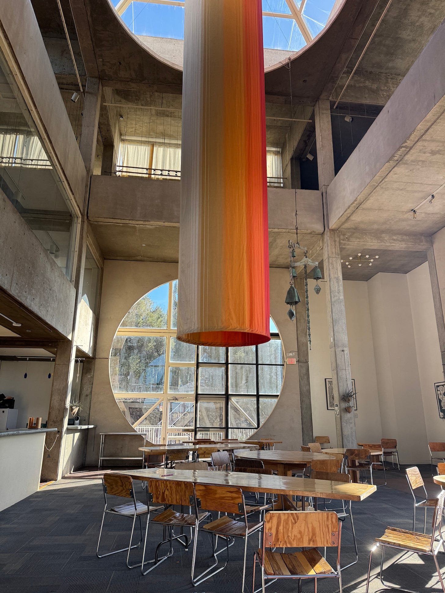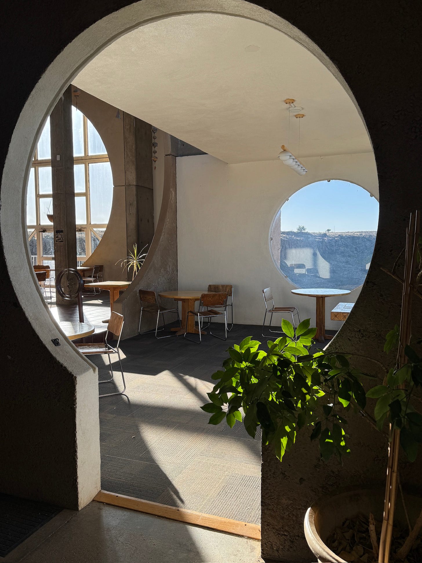 Though Soleri originally envisioned Arcosanti housing thousands of people, it has never been occupied by more than a hundred. Today, a small community of artists and staff live onsite, working in the ceramics apse and bronze foundry, producing the iconic windbells Arcosanti has become known for. There’s a steady flow of visitors to the cafe and surrounding hiking trails, and the onsite amphitheater regularly hosts intimate music festivals. But outside of these blips of activity, Arcosanti feels a bit like a ghost town— the once radical vision suspended and stalled, now more of a monument to an idea.